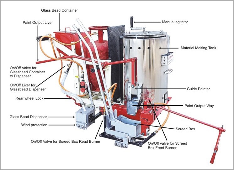 Road marking machines are the equipments that make the lines on the road of desired width and length. These machines facilitate road marking on roads of several kilometers, where marking with hands by laborers is merely impossible. Road marking machines are either manually operated or automatic in their types. Manual operated machines offer better control though may not function as rapid as the automatic ones. They can mark a variety of lines such as broken lines, long stripes, curved lines etc. They are perfect for road marking the places such as highways, air-ports, railway platforms etc.